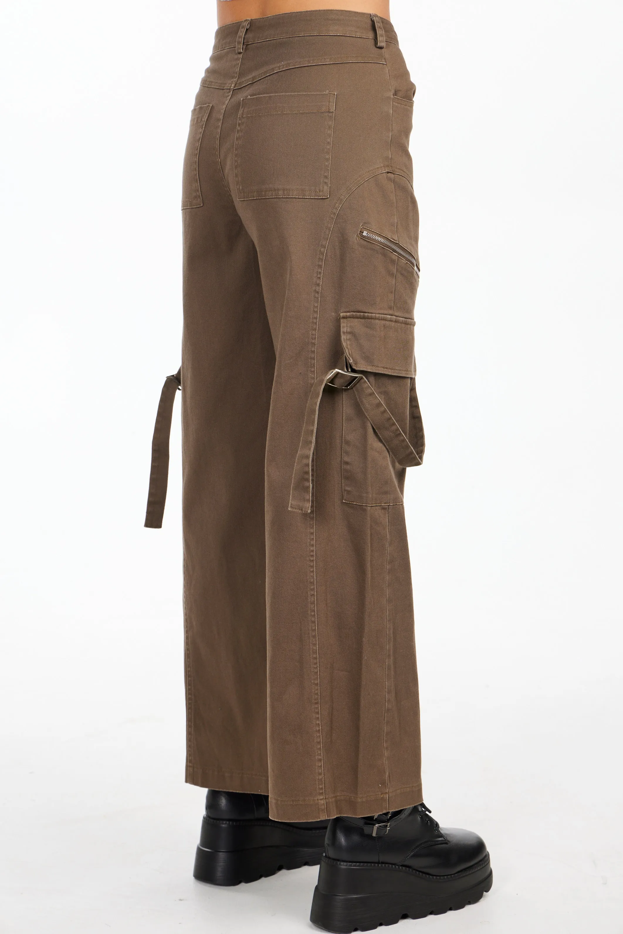 - Buckle strap detail and zipper trims on the sides