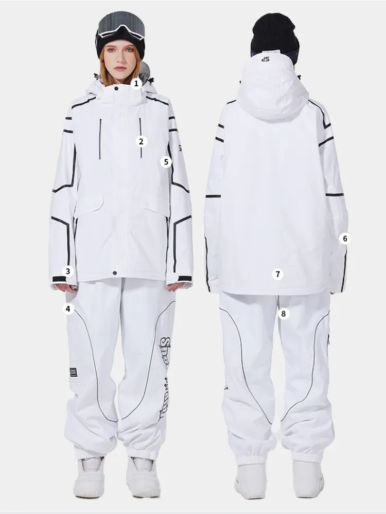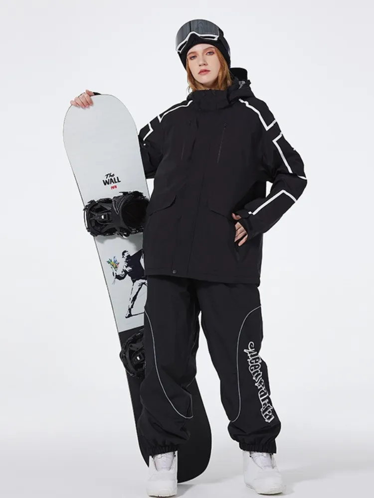 This minimalist-colored ski set features sleek line designs on the sleeves for a more structured look. The multi-color combination ensures style and versatility, perfect for staying fashionable throughout the entire ski season.