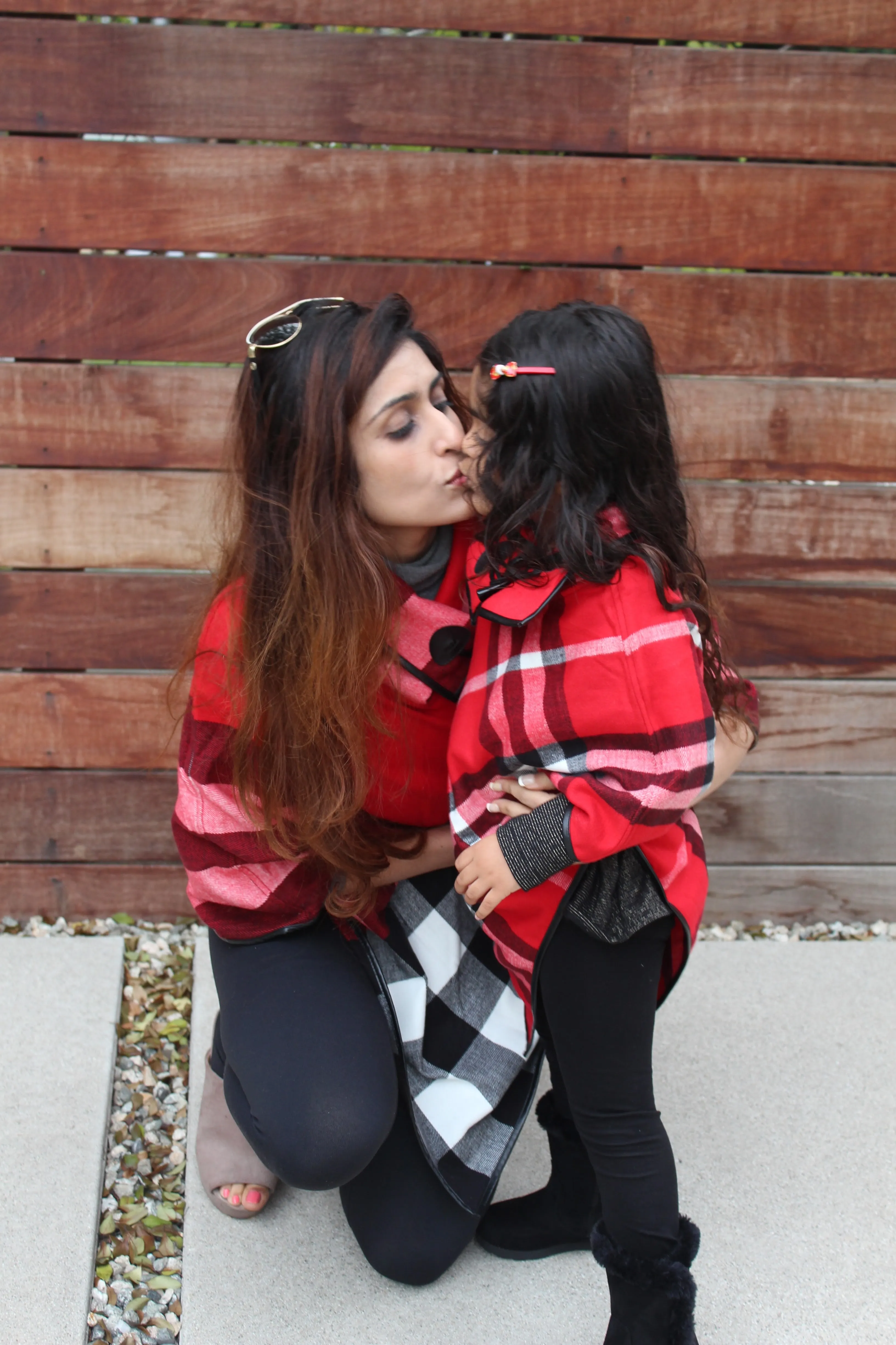 Our best selling exclusive Mommy and Me plaid poncho 2 piece SET! Perfect for family pictures and gifting! Get this great deal now! Limited quantities made. Can be gift wrapped with a note at no extra cost. Available in 3 other colors. Check out all the ponchos