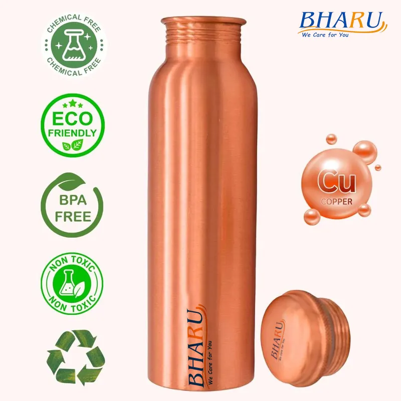 • This Bottle is made of pure copper, this is BPA free and made of high-quality food-grade material. The material of the bottle makes it non-toxic and completely safe to drink water in it.