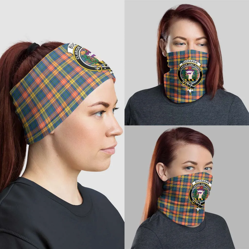 Buchanan Ancient Tartan Neck Gaiters, Tartan Bandanas, Tartan Head Band with Family Crest