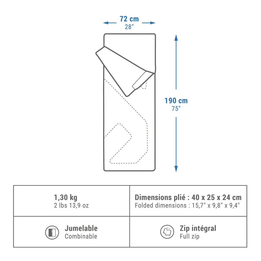 Sizes: 190 x 72 cm | Full-length zip