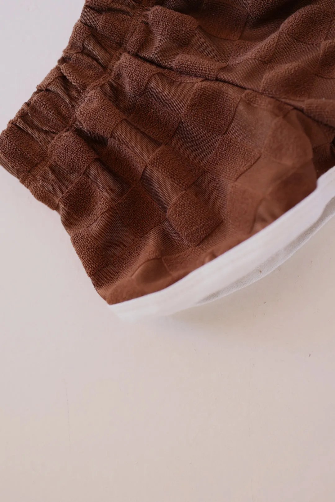 Get ready for play dates with our trendy brown checkerboard terry cloth shorts! Soft and comfortable, these shorts are perfect for kids aged 0-9 years. The classic checker board pattern adds a stylish touch to their playtime wardrobe.