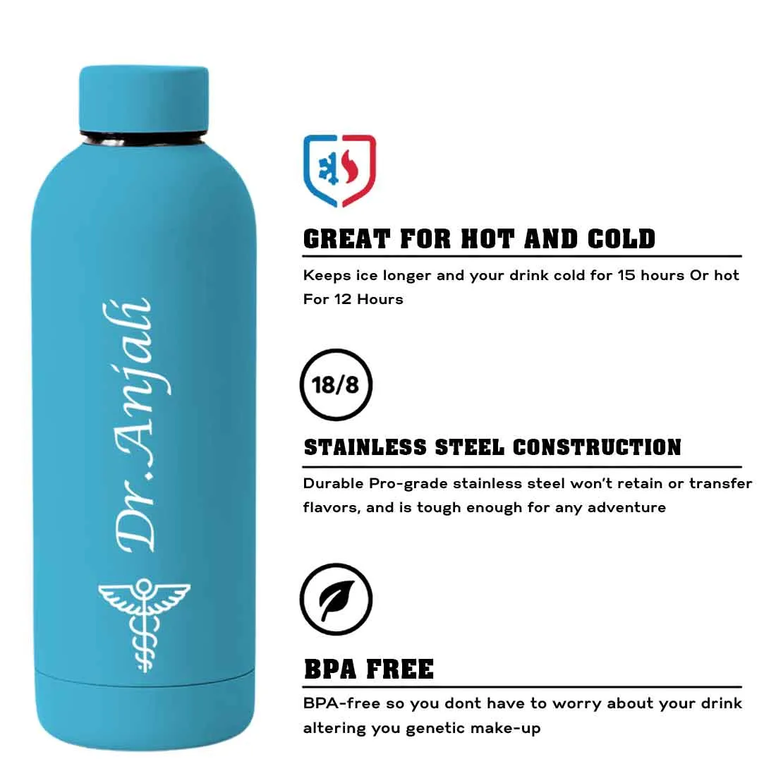 Looking for Water Bottles for Doctors? Nutcase Custom Bottles are stylish and sturdy. These 500ml double insulated stainless steel water bottles are luxuriously finished, BPA free, leakproof, double insulated and keep your hot drink hot for 8 hours and cold drink cold for 12 hours.