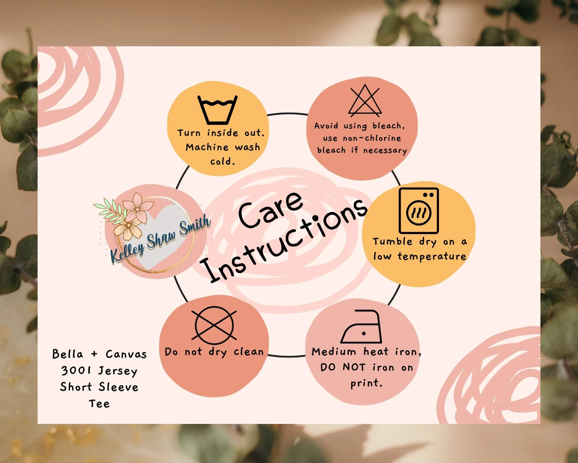 Do not dry clean. Avoid ironing on the design.