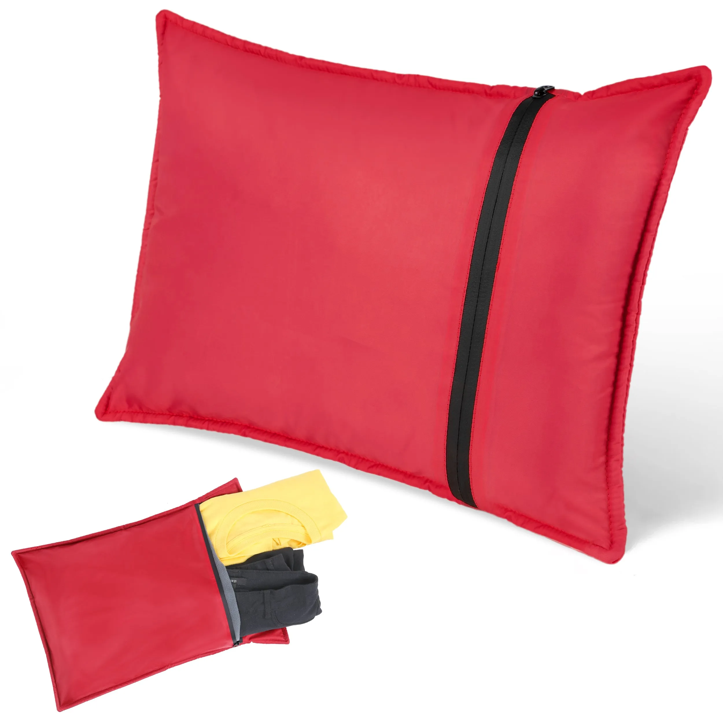 Tired of small travel pillows that are lumpy and uncomfortable; too flat to support your head; makes crunching, crackling noises that interrupt your sleep? This travel and camping pillow is COMFORTABLE, made of QUIET snugly soft material , is easily CUSTOMIZABLE, dual functioning stuff sack and pillow. This means CONVENIENCE, SUPPORT and the QUALITY SLEEP you need on those long trips..