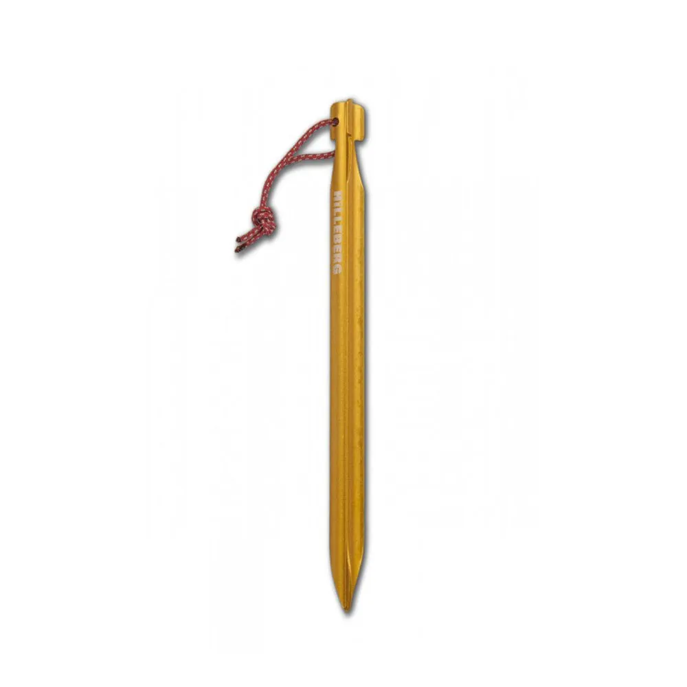 Our Y-Peg is exceptionally strong yet quite lightweight, and its "Y" profile gives both excellent penetration in hard ground and plenty of surface area for reliable hold in softer conditions. Both because of its shape and its durable, hardened aluminium body, the sturdy Y-Peg can be hammered into hard ground. Its bright gold anodized colour makes it easy to see, and an attached string loop provides for easy removal.
