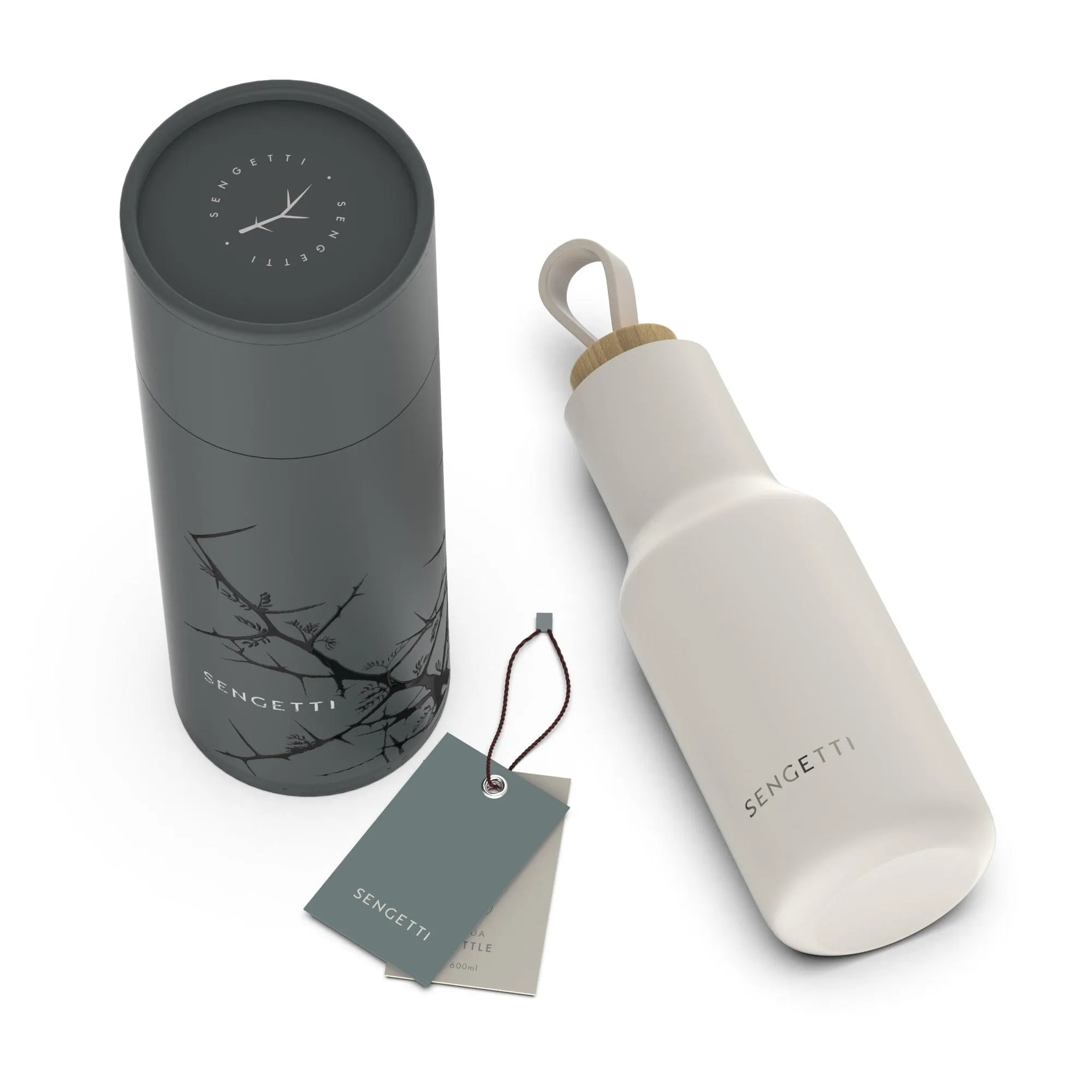 Sengetti Hydra Water Bottle -The Sengetti Hydra water bottle, designed for stylish hydration. Convenience meets style in one sleek package. This perfect water bottle stands out from the rest with its unique patented design, trademark Sengetti colours, and solid beach wood lid. The Hydra Bottle is the go-to water bottle for those who want to be noticed. This functional, sturdy, reusable bottle will add a touch of class to your drinking experience, making it the coolest addition to your day.