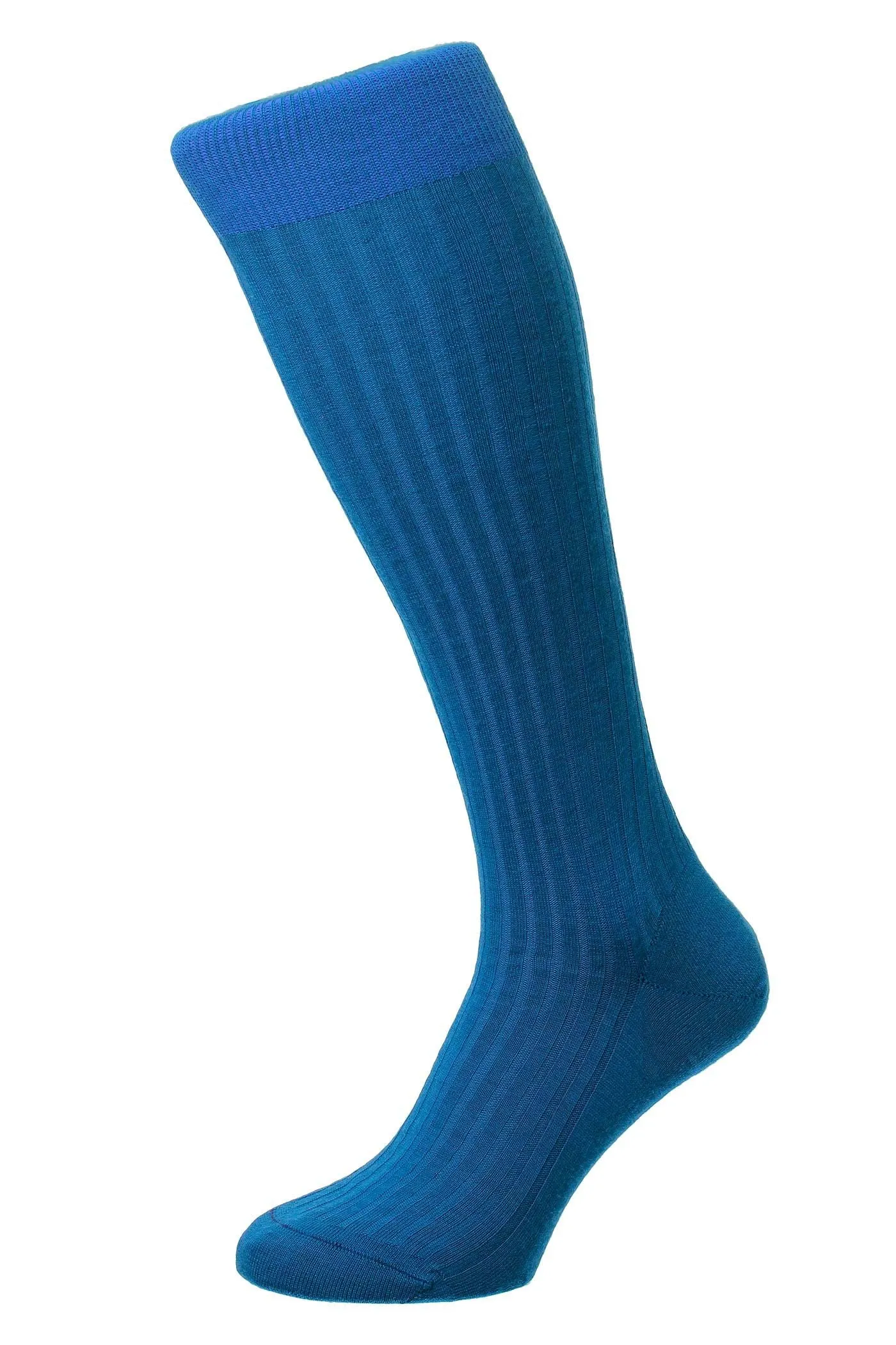 Solid colour socks are an ideal wardrobe essential, in fact no sock drawer would be complete without a fine pair of solid colour socks. Pantherella's fine merino wool Laburnum 5x3 Rib socks in a longer length for those who prefer the 'over-the-calf' look and feel are a classic. A firm favourite with our customers the world over they are the perfect fit for every occasion.