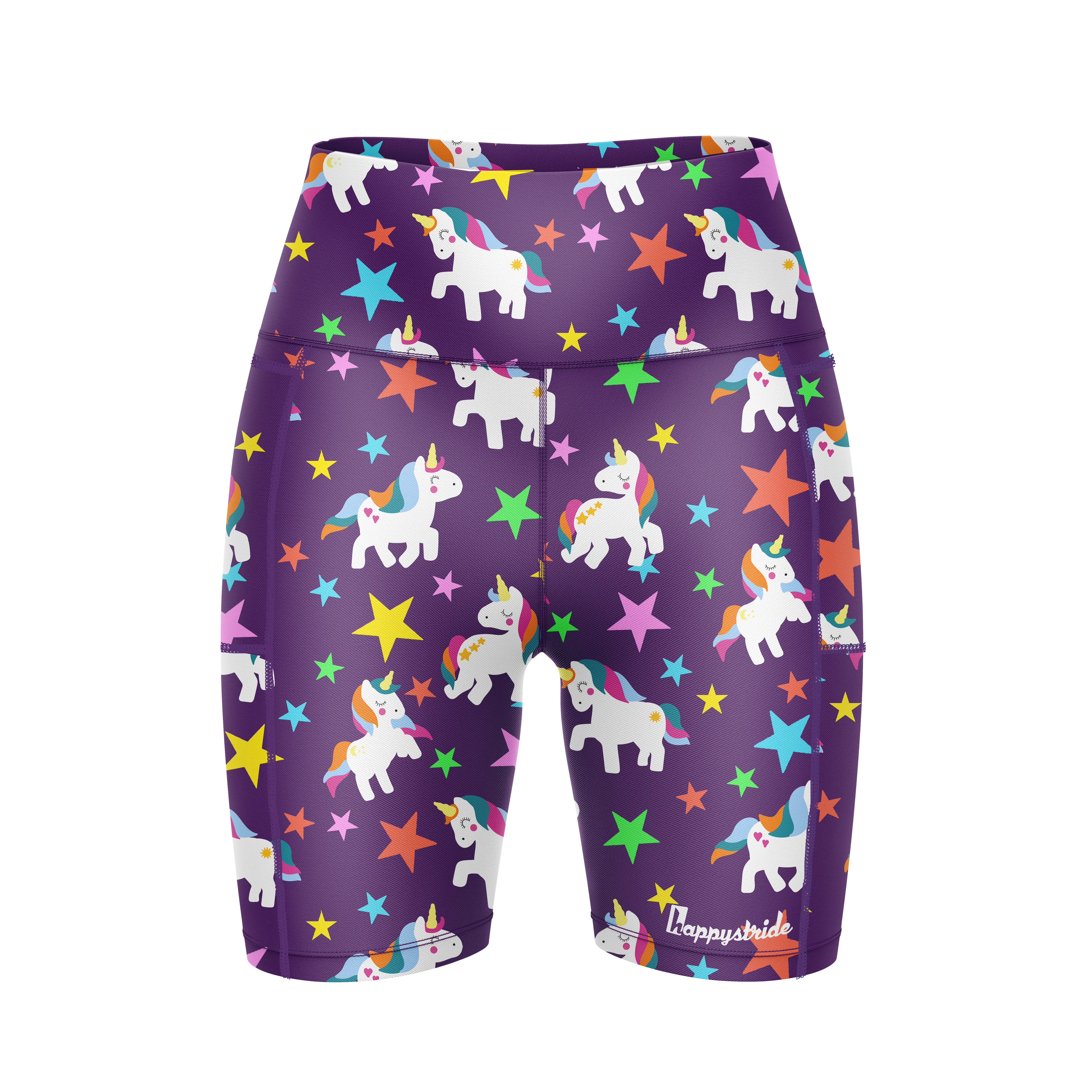 Step into the magical land of unicorns and stars with this cute purple pair of unisex running and fitness shorts which feature adorable unicorns and brightly coloured multicoloured stars. These are a total showstopper and will attract some attention whilst out running or at races... and may even bring some magical unicorn dust to your running and fitness! This design is also available in our classic shorts, so you can go matchy-matchy with a friend.