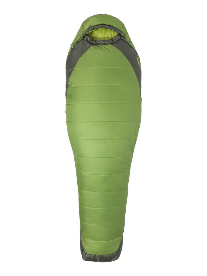 We've taken our best-selling Trestles Elite Sleeping Bag series and made our most sustainable sleeping bags ever, without sacrificing up-mountain performance or durability. The Women's Trestles Elite Eco 30 Sleeping Bag is an environmentally friendly update which features Marmot Upcycle® PFC-free and recycled shell, lining, and fill. It also has a female-specific fit and extra insulation in key areas. The HL-ElixR™Eco Micro synthetic insulation uses a unique blend of three fibers for maximum warmth, soft handfeel, and high loft. Wave construction on top and a blanket construction on the bottom provide optimal warmth and comfort. An anatomically 3D footbox and a fold-down secondary zipper offer ventilation and easy access for this mummy sleeping bag. We designed the Trestles Elite Series for treks where every ounce counts, so we kept the lightweight and easy compressibility of the original. EN rated as comfortable for women to the comfort level of approximately 29.7°F.