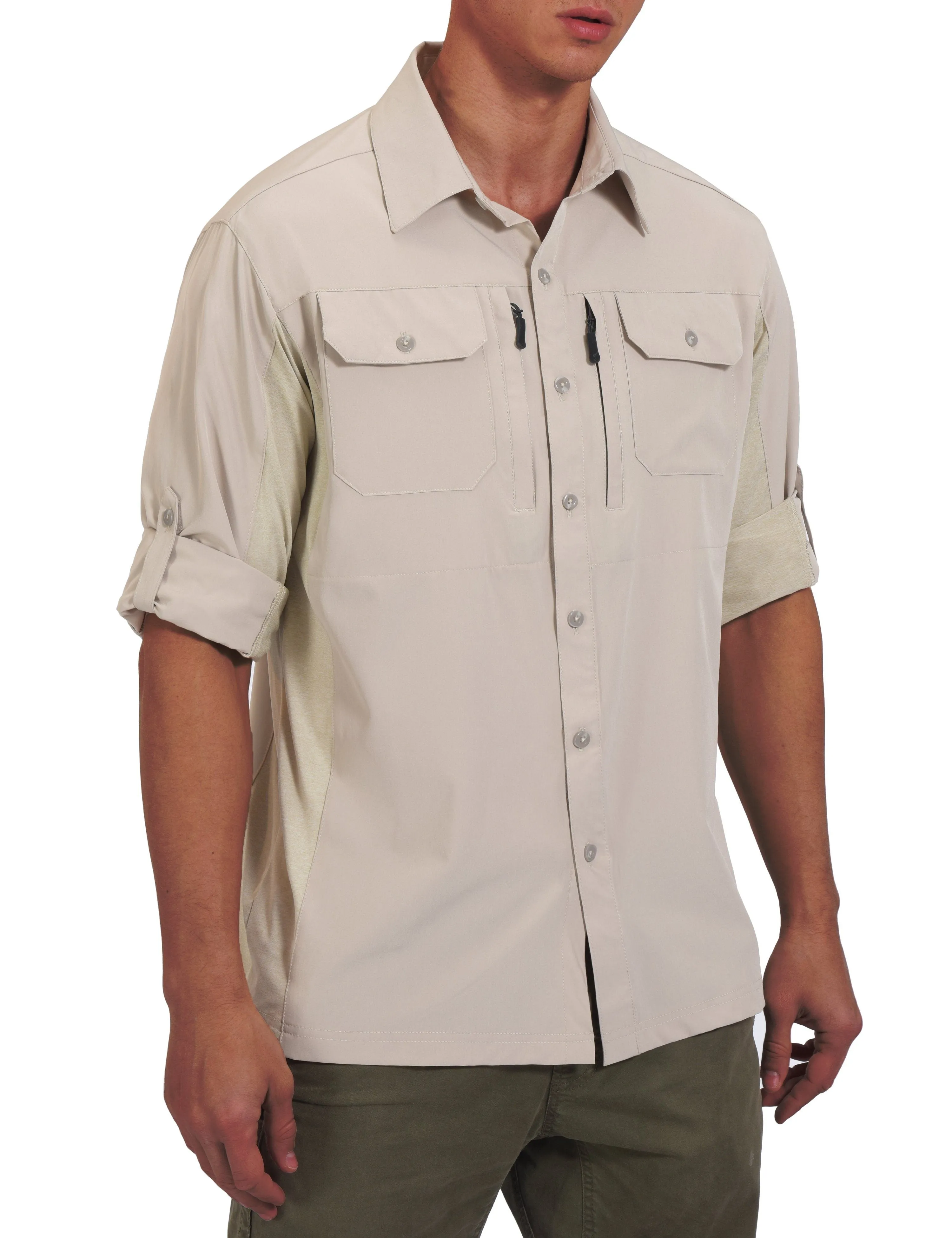 - ADJUSTABLE FEATURES - Roll-Up Sleeve: Reel long sleeves pull loop and button to easily convert into short sleeve shirt