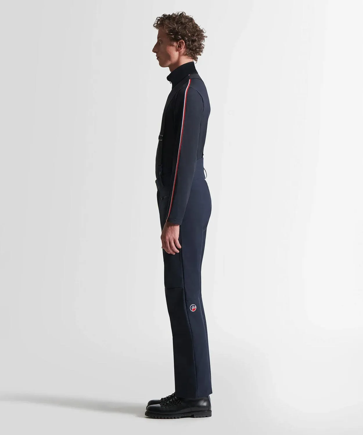 The Tomaso ski pants combine high functionality and technical design for superior protection against the elements. Made from stretch fabric with a Fusalp-approved membrane, their welded seams keep out water while ensuring warmth and comfort. Ideal for the slopes, they feature a padded waistband with adjustable elastic tabs, snow gaiters, and removable straps. Complete the look with one of the collection's ski jackets.