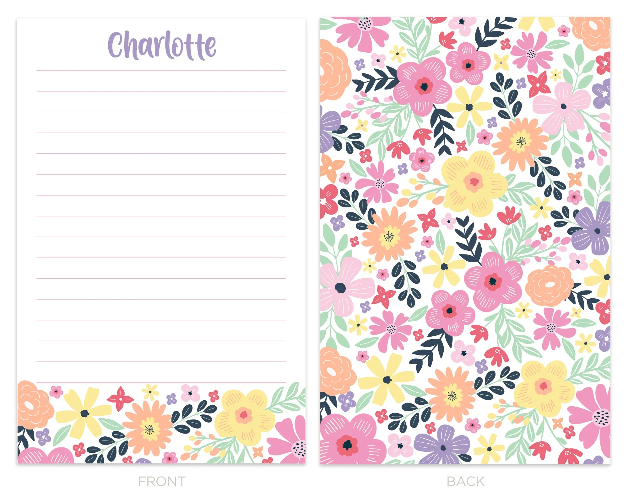 This personalized writing set is perfect for kids that love to write letters, correspond with a pen pal or are going off to summer camp. The writing sheets are 5.5" x 8.5 and are digitally printed on 70lb. paper. Sheets have a patterned back for a fun pop of color when the recipient opens the envelope. Each letter sheet fits perfectly in the 5.5" x 4.25” envelopes (included) when folded in half. The set arrives in a cellophane sleeve and are tied with a ribbon making it perfect for gifts.