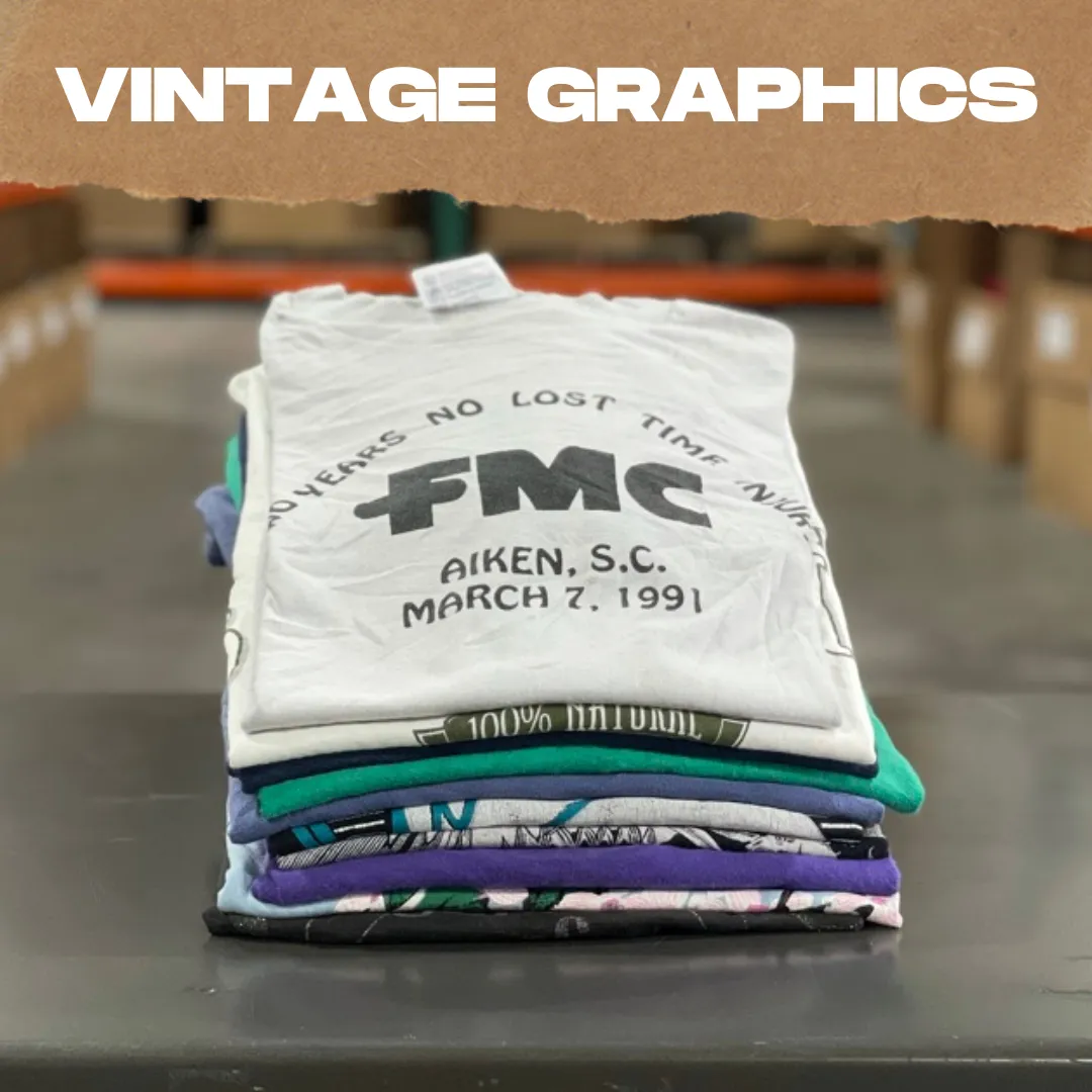 100 pounds of handpicked vintage and retro T-Shirts chosen at random by our in-house Thrift Experts. The pics shown are only examples, every piece we ship out is one of a kind!