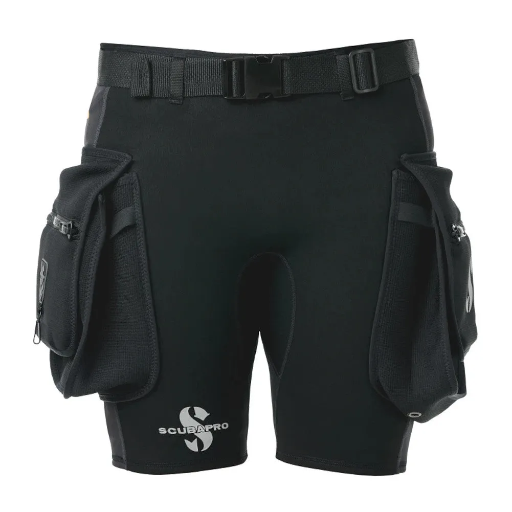 Hybrid Cargo Shorts offer all of the features of Hybrid Cargo Pants, in a short design that maintains function. The form-fitting Hybrid Cargo Shorts are made of quality 1mm X-Foam neoprene and stretchy nylon. On the inside, a micro-plush lining makes the shorts warm and cozy. This plush lining absorbs less water, increasing overall warmth, plus dries quickly. Hybrid Cargo Shorts come with large hook & loop pockets featuring internal bungees and a D-ring, along with large fast-draining eyelets and an additional zippered pocket for stowing small valuables. The shorts come with an adjustable waist belt that threads through a series of belt loops and includes an easy-to-use male/female squeeze buckle closure. Anti-abrasion fabric on the seat panel enhances durability. Designed to be worn either by themselves or over a dive suit, Hybrid Cargo Shorts are perfect for enjoying a day in the water.