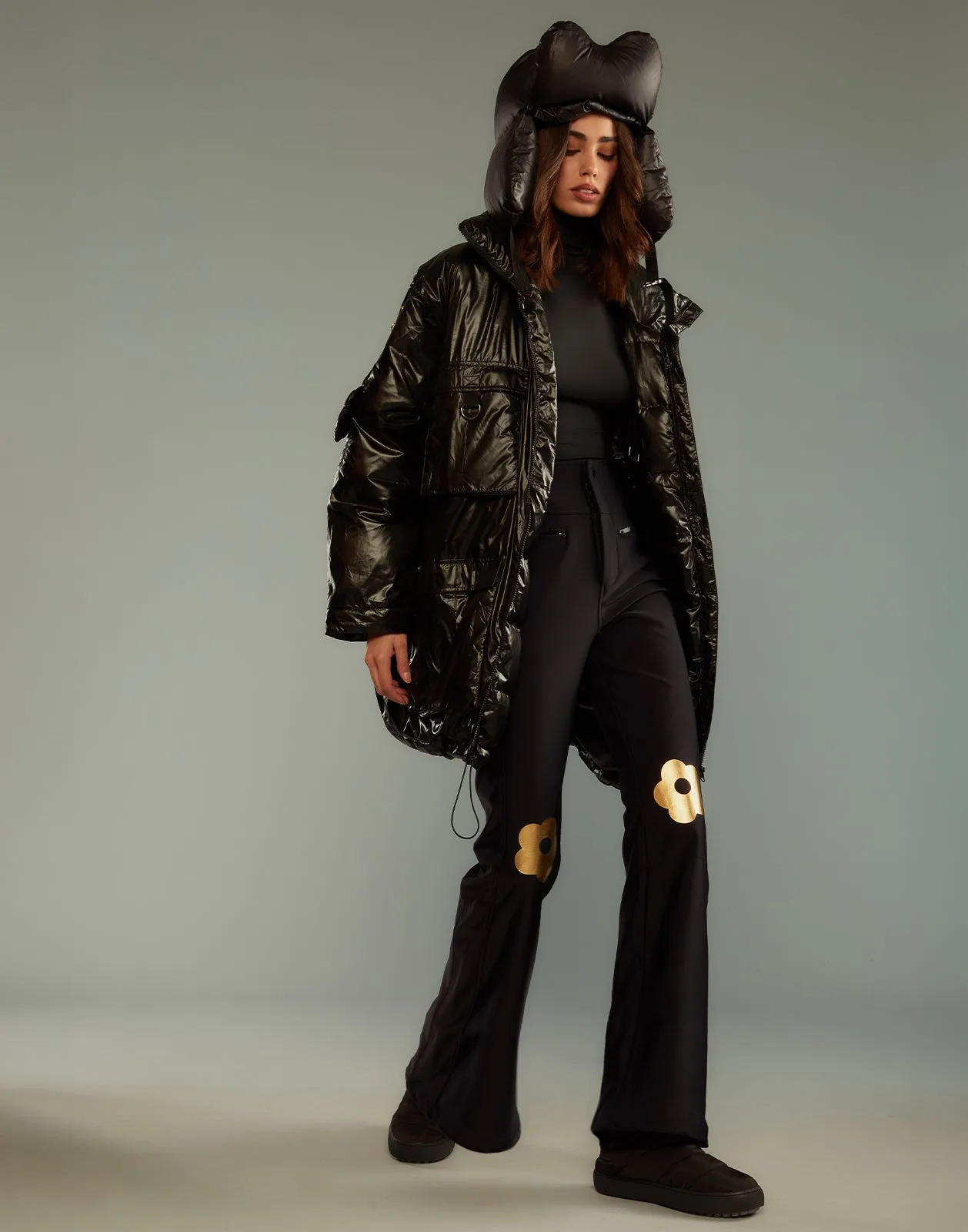- Extension gussets with zippers at bottom leg with elastic ankle lining