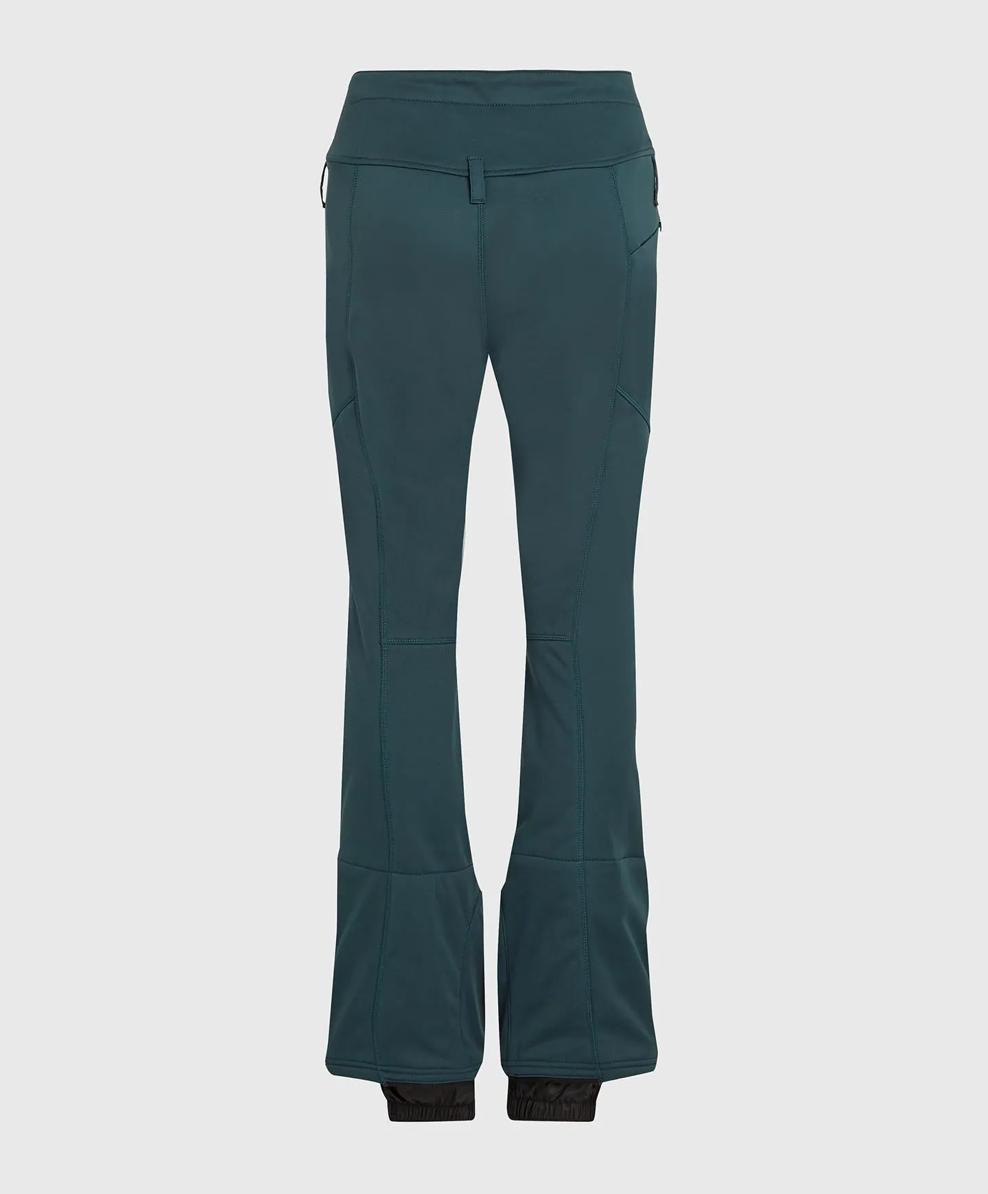 From a hike on cold days to conquering the blacks in full winter the Blessed Pants are up there for performance and style. Softshell super stretch fabric in skinny fit they have an elasticated panel at the back of the high waist a detachable snow gaiter at the leg and cleverly placed seams to flatter the feminine shape. 7K waterproofing and 10K breathability.