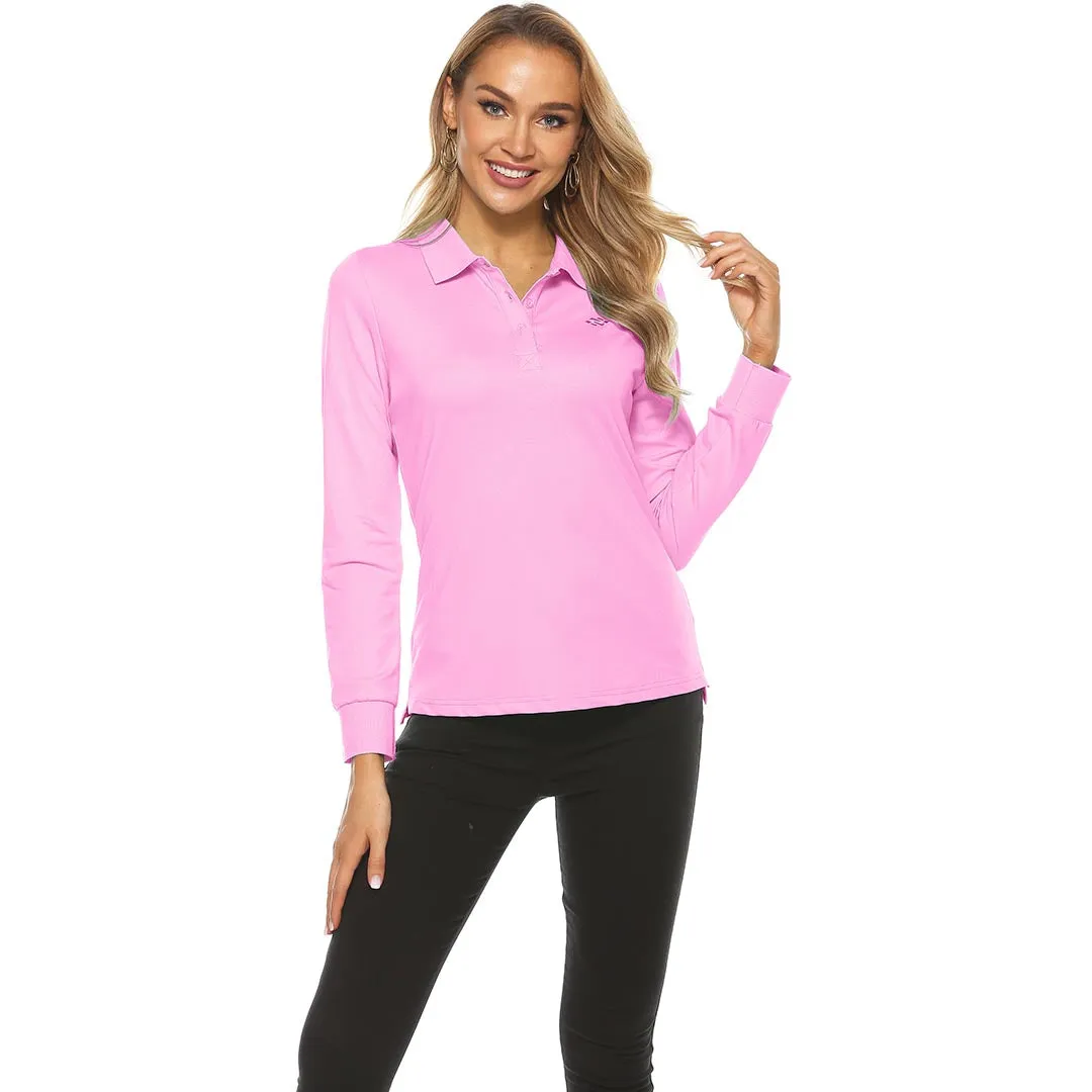 Womens long sleeve polo shirt perfect for Golf, Tennins, Hiking, Running, Fishing, Sailing, Camping Work and any other of your favorite sports & daily wear.