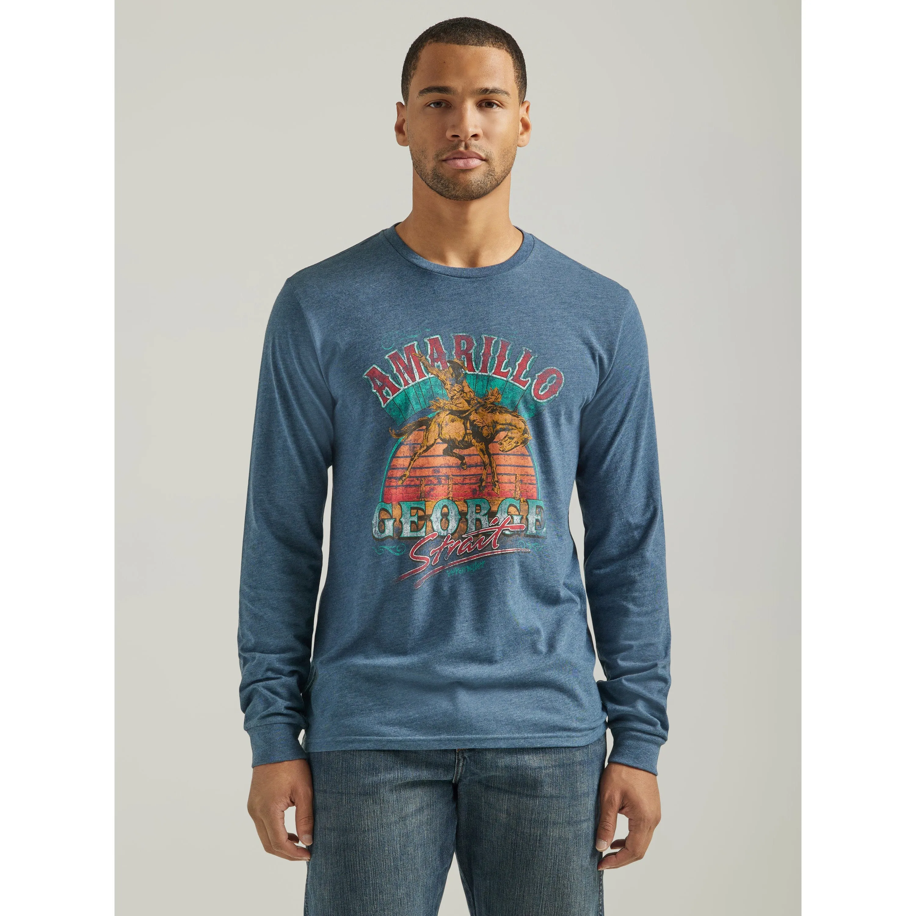 Inspired by the one and only king of country music, this long-sleeve Wrangler® graphic tee makes it easy to wear your cowboy pride front and center everywhere you go. It's crafted from a comfortable cotton blend that's great for transitioning between seasons but lightweight enough for layering under a jacket when the real cold sets in. It comes with a vintage-inspired graphic print across the chest.